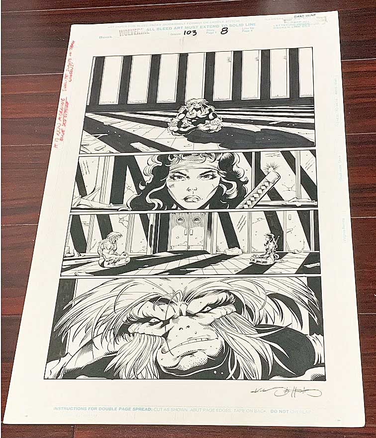 | Original Comic Art Page. Wolverine Issue #103 Page 8 Wolverine with Elektra Original Art 11×17. Full Pencils and Inks.
